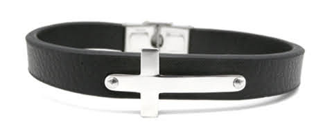 Black Leather Bracelet – Cross
