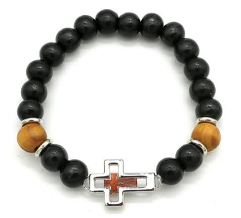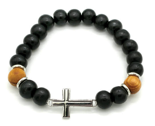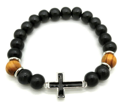 Wooden bead bracelet black cross