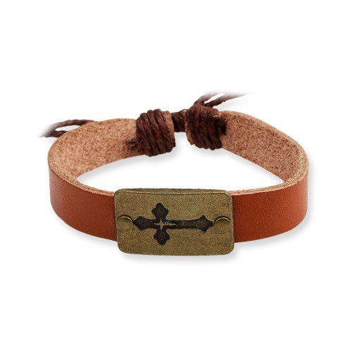 Bracelet Brown Leather Cross
