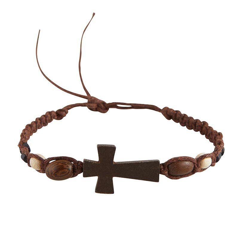 3-piece bracelet with leather and metal finish – crown/cross silver
