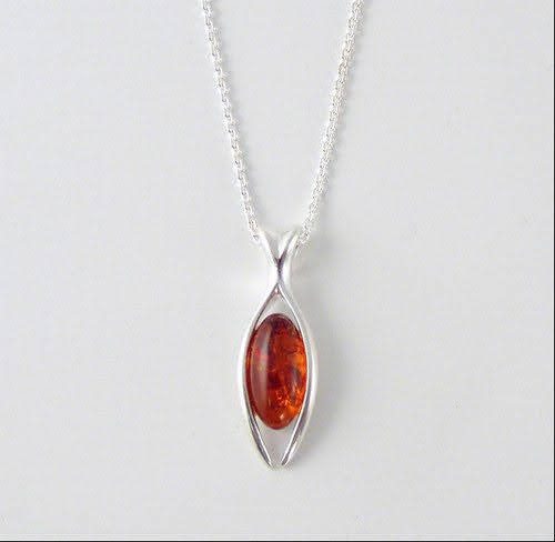 Sølvkæde og sølvvedhæng med rav – fisk