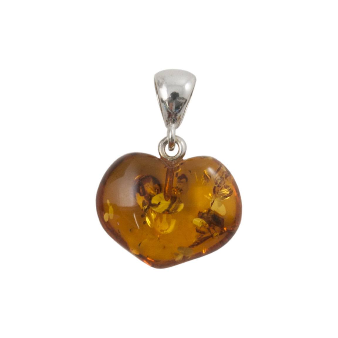 Hjertevedhæng i rav/sølv