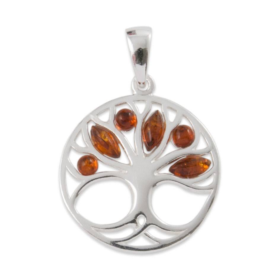 Sølvvedhæng med rav – livstræ
