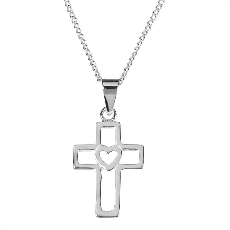 Necklace in Box – Cross/Cutout Heart – Silver Plated – 16 inch chain