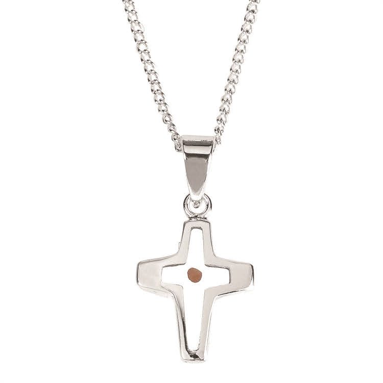 Necklace – Communion Raised Cross/Stone 1.25 Stainless Steel