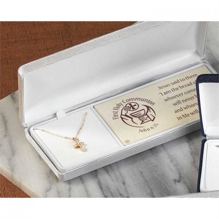 Necklace – Gold Plated Small Crucifix – 16 Inch Chain – 1st Communion