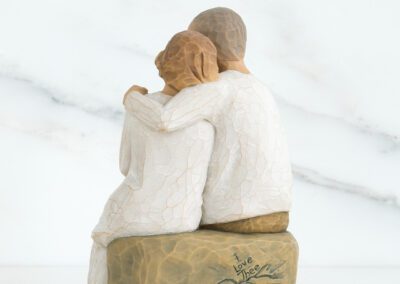 "Jeg lavede denne figur ved at bruge mine forældre som modeller. Da jeg bad dem om at sætte sig ned og sætte sig til rette, så de bare ud til at passe så perfekt sammen. Det var sådan en selvstyret positur, som om de har gjort det i årevis - og det har de! De fejrede deres 60 års bryllupsdag i 2011. Udskæringen på bagsiden er en lille ekstra detalje: 'I love thee'. Jeg kan godt lide lyden af ordet 'thee'. Det føles poetisk og intimt for mig." – Susan Lordi
