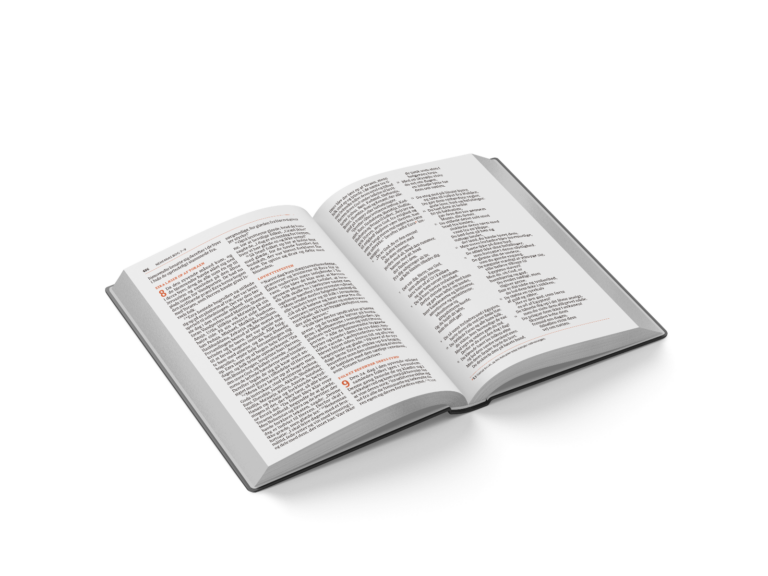 - Designet er udformet med henblik på at optimere læsbarheden. Formatet er større og skrifttypen er meget stor. Teksten er sat op i to spalter per side, hvilket gør tekstlinjerne kortere og nemmere at læse. Der bruges tre forskellige skrifttyper og to forskellige farver, som klart viser, hvad der er tekst, overskrifter og henvisninger.