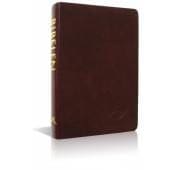 Bibelen på hverdagsdansk i brun læderindbinding.