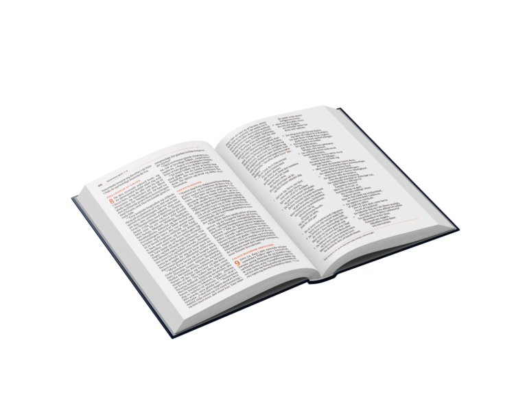 - Noterne i teksten tilføjer ekstra information uden at forstyrre selve teksten. De uddyber og forklarer vanskelige passager, så læseren kan opnå en bedre forståelse af indholdet. De er placeret i nederste højre hjørne og et diskret orange bogstav markerer henvisningen i teksten.
