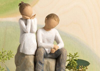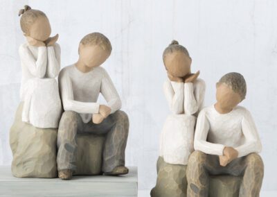 En gave til at afspejle venskab mellem søskende. Børnefigurer fungerer godt i familier. Placer to (eller tre eller flere) figurer, så de ser ud til at interagere, er vendt mod hinanden og tilbringer tid med hinanden. Ligesom familier gør.