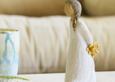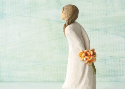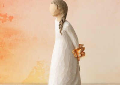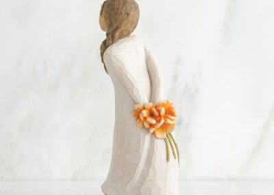 Den søde For you figur er en nysgerrig, munter pige med flettet hår og smukke, gule blomster bag ryggen. Stil hende sammen med andre Willow tree figurer med blomster eller lad hende stå selv og bringe et smil på dine egne eller dine kæres læber.
