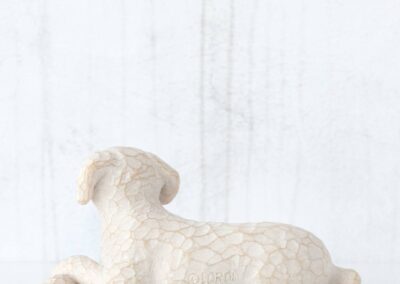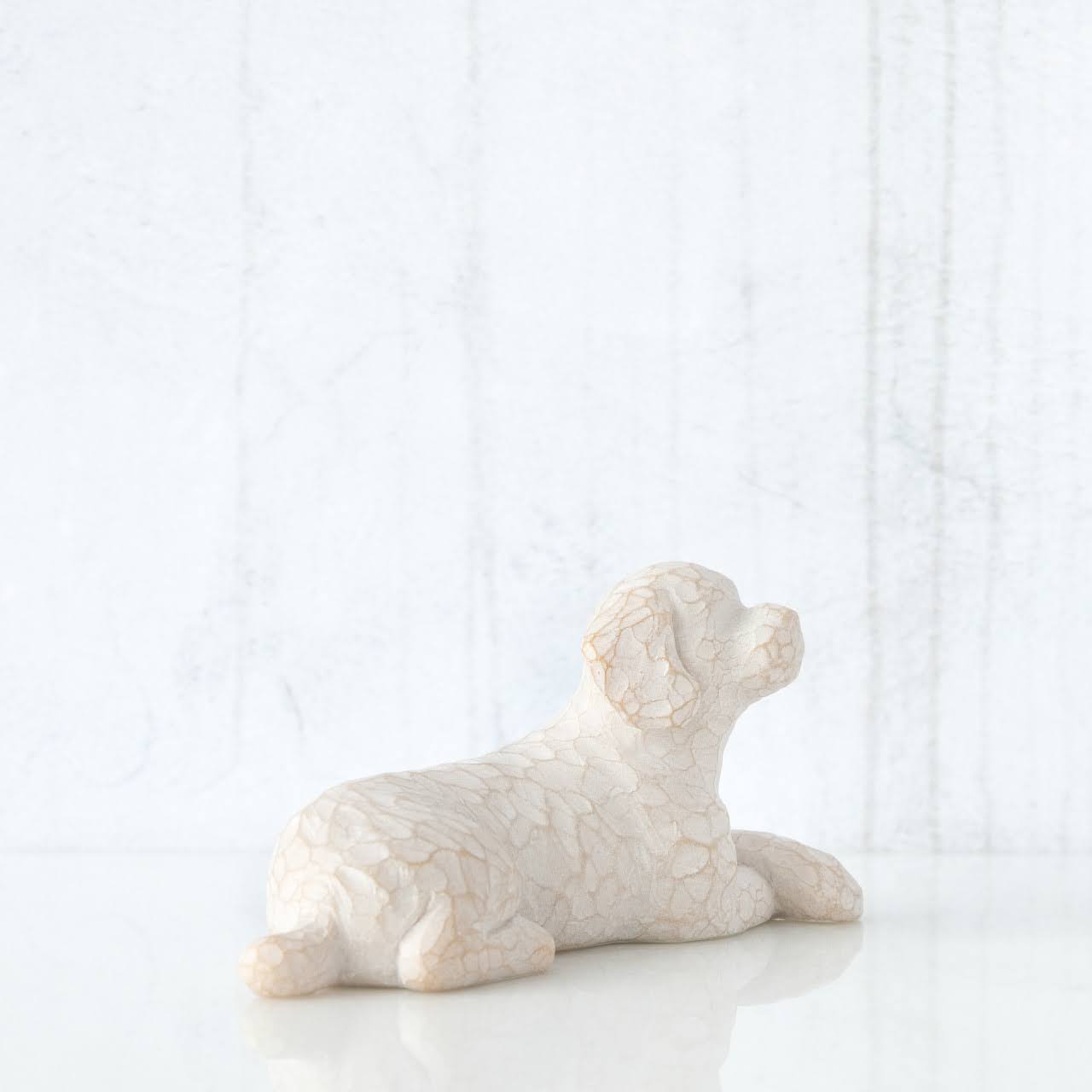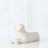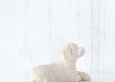 Denne figur forestiller en hvid hund, som ligger afslappet og afventende. Måske der snart er en godbid eller en gåtur i vente. Den udstråler den tillid og godmodighed, som alle kæledyr udviser.