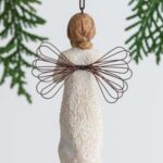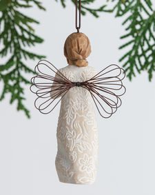 En gave til at udtrykke sympati, trøst, erindring og heling. Til helligdage eller i hverdagen ærer ophæng og ornamenter livets milepæle. Denne figur er en mindre version af Remembrance med en brun elastiksnor til ophængning. Fås nu med mørkere hud og hår, se Remembrance (darker skin) Ornament.