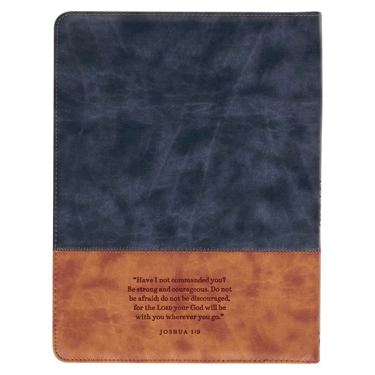 Strong and Courageous – Joshua 1:9 – Butterscotch and Navy Faux Leather Padfolio