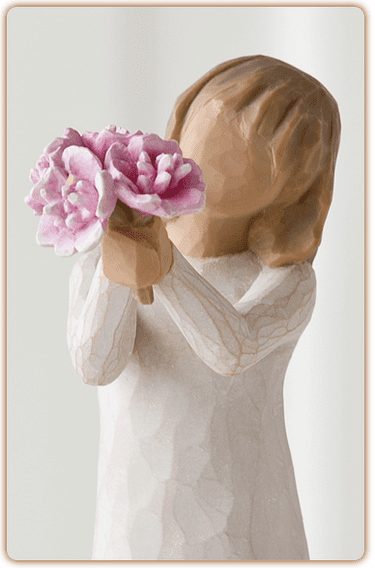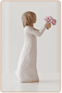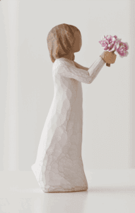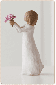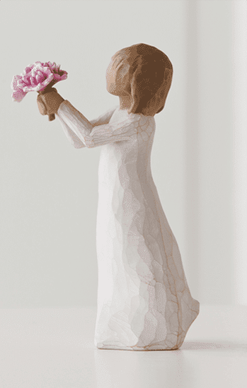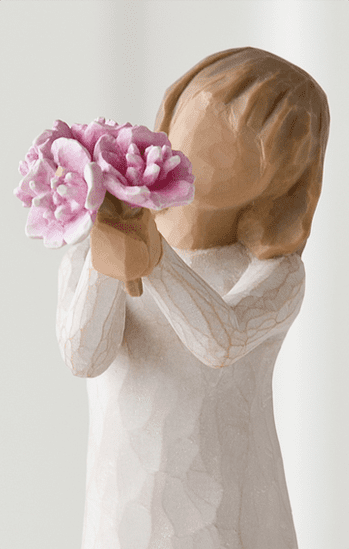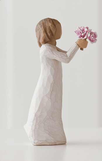 "'Tak' er et udtryk, vi bruger dagligt - fra en upersonlig hurtig kommentar til en mere hjertefølt påskønnelse af støtte fra forældre, familie, venner, lærere, frivillige. Jeg håber, at denne figur kan bruges til alle de omstændigheder, når du vil sige 'Tak'... Det at figuren læner sig fremad er et tilbud om taknemmelighed og gæstfrihed. Blomsterne er klassiske, tidløse pæoner, som frigiver en vidunderlig duft og hvis livscyklus kan strække sig over generationer." – Susan Lordi