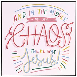 Graphic Colorful Text Is Featured On This Wall Plaque: And In The Middle Of My Chaos There Was Jesus!