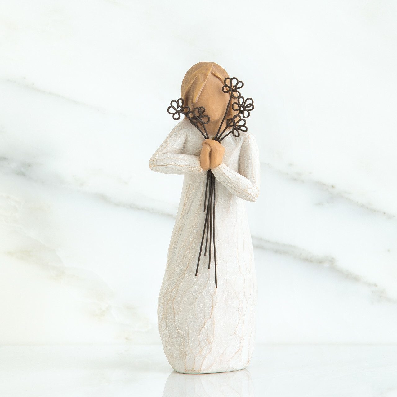 Warm Embrace står med ansigtet begravet i smukke, gule solsikker. Udtrykket er beroligende, opløftende og sommerligt på samme tid. Figuren er en skøn gave til enhver, som elsker sommer, solsikker og haven generelt. Den kan udtrykke, hvordan du har det med modtageren eller simpelthen være et udtryk for, at du ønsker dem alt godt her i livet.