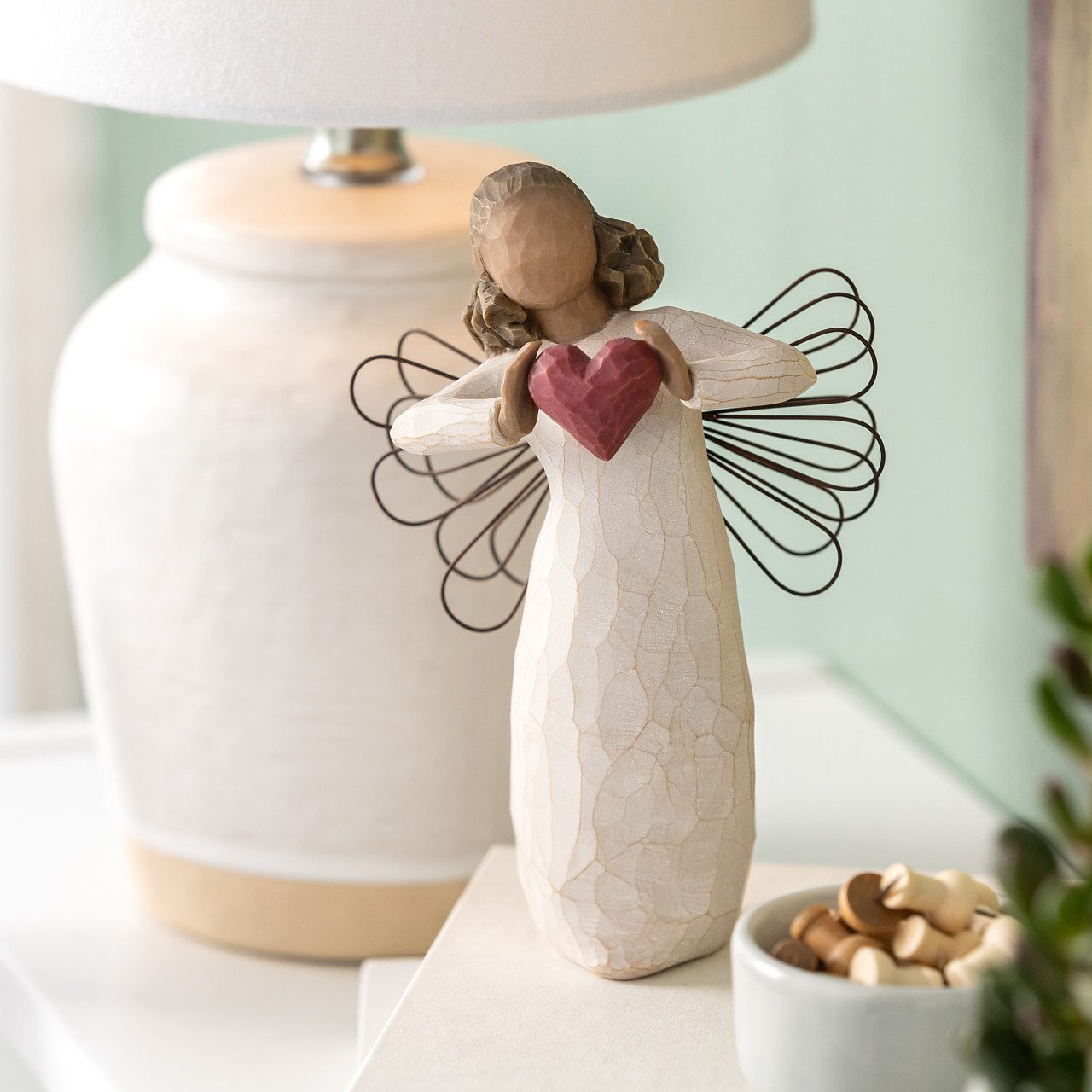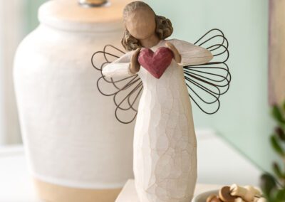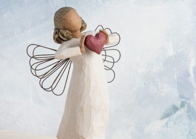 Denne figur kan bruges som en bryllups-, jubilæums- eller Valentinsdagsgave, der udtrykker kærlighed og omsorg. Du kan give den til en, du elsker, blot at sige netop det. Englen danser med et hjerte i hænderne, som om hun næsten ikke kan rumme sin kærlighed til dig, mig og verden.